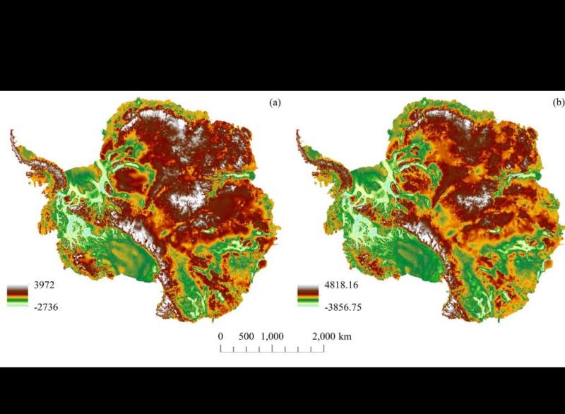 南极冰下地形高程图。(中国极地研究中心供图)